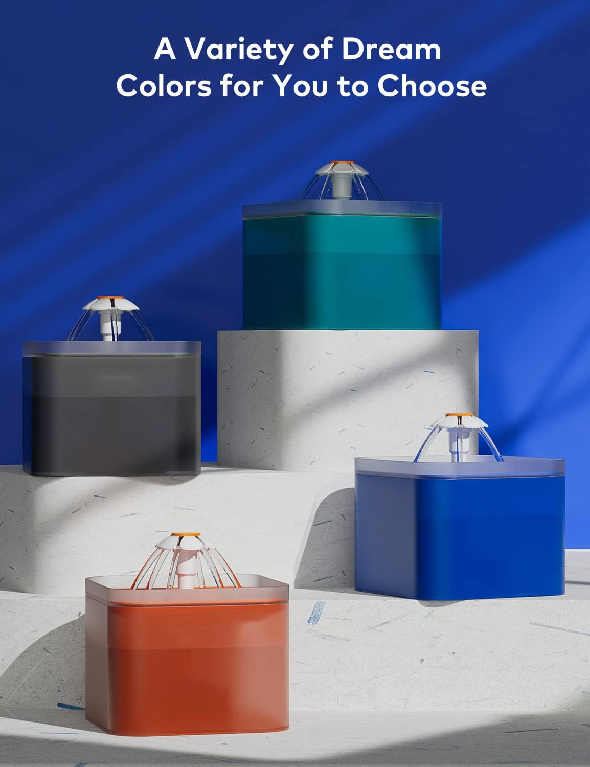 3 water flow designs: floral waterfall, floral bubble and soft fountain. Any type of water flow can meet the different needs of pets. This toy-like design, different water flow patterns and bright colors can encourage your cat to drink water, which is good for your pet's kidney health.