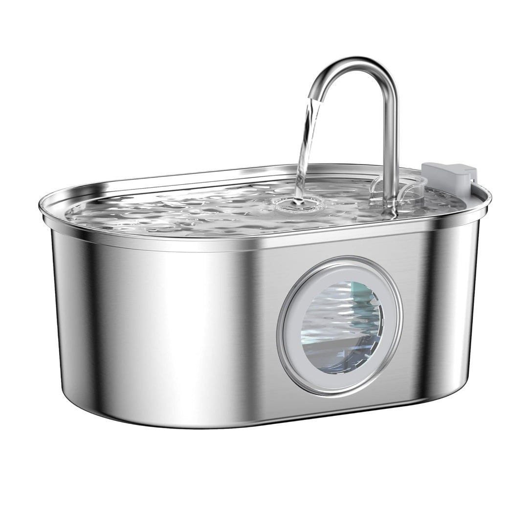 Cat Water Fountain with Water Level Window, 100oz/3.2L Water Fountain for Cats Inside, Stainless Steel Pet Water Fountain Dog Water Dispenser