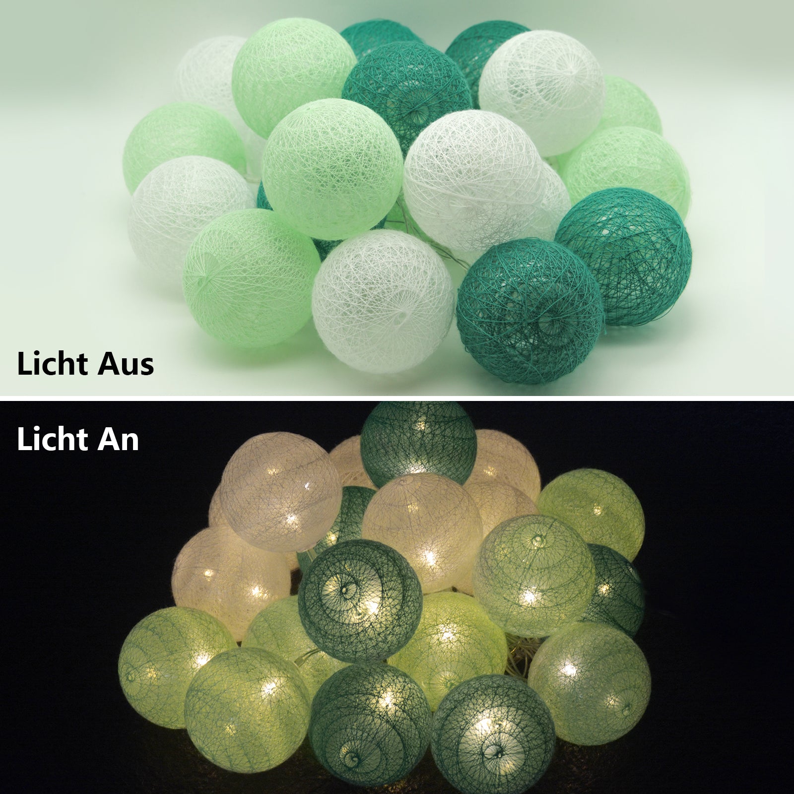 Ciskotu Baumwollkugeln Lichterkette, 20 LED USB Dimmbar Cotton Ball Lichterkette mit Fernbedienung und Timer, LED Kugeln Lichterkette Innen für Kinderzimmer Weihnachten Hochzeit Party (Grün)