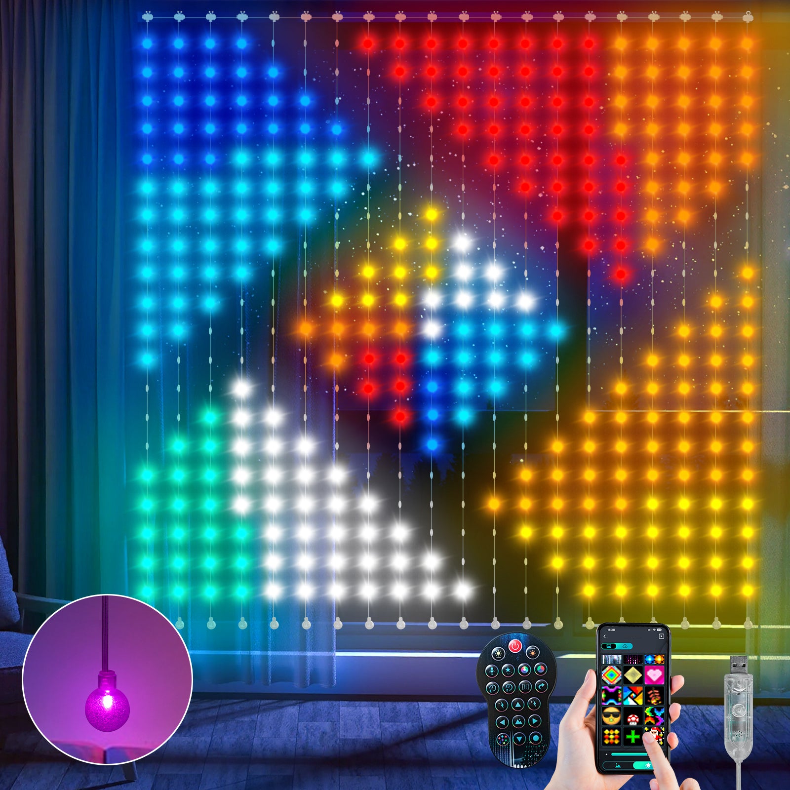 - Ideal Christmas decoration: Ciskotu intelligent light curtains can be controlled via the app and remote control and have 400 independent LED lights. Each LED curtain light chain is equipped with 20 gravity balls that ensure that the cable does not bend to achieve a better use effect. App offers different theme patterns such as Christmas, Halloween, Valentine's Day, birthday party, etc., which is an ideal choice for different holiday decorations.