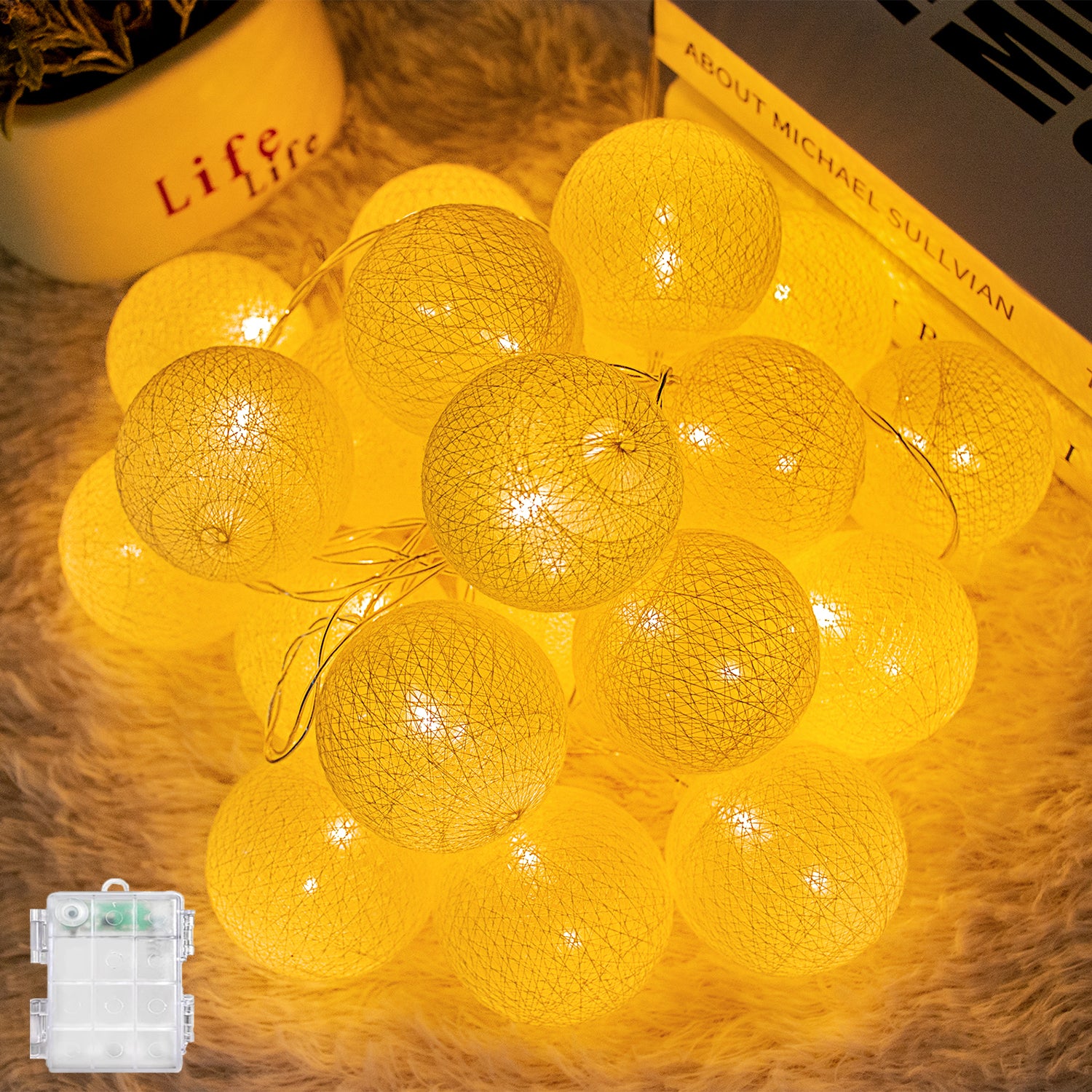 Lichterketten Inne Batterie, 3.8M Lichterkette Lampions 20 LED, Cotton Ball Lichterkette Kugeln für Kinderzimmer Weihnachten Party Garten Terrasse (Weiß)