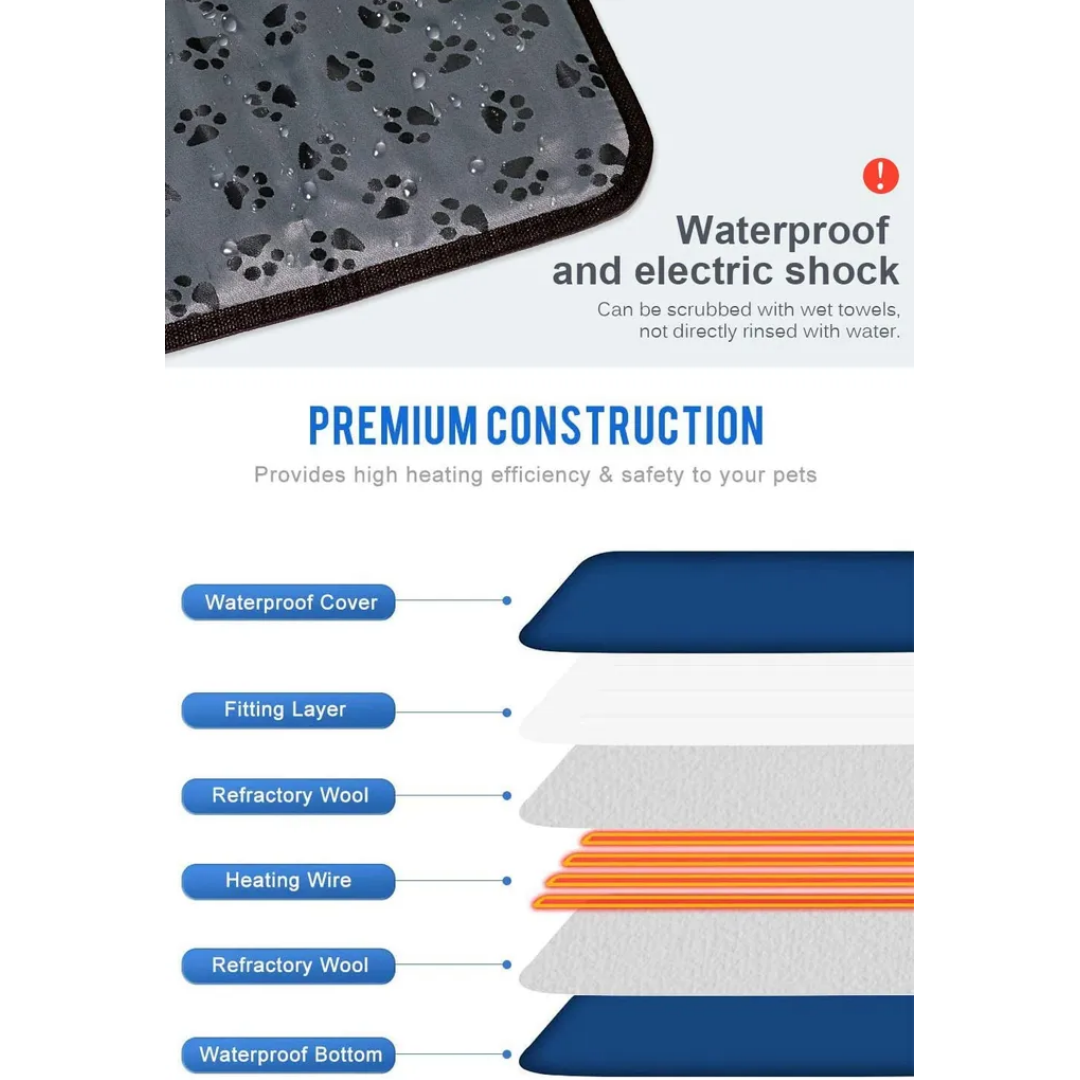 Pet Heated Blanket for Cats and Dogs, Pet Heated Blanket with Adjustable Temperature Controls, Waterproof Heating Mat with Anti-Break Bite Tube and Replaceable Felt Cover